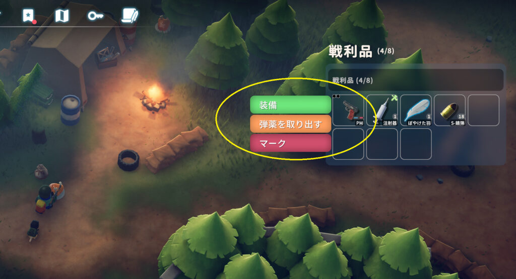 - 銃から弾薬だけ抜き取る(銃にカーソルを合わせて右クリックで弾薬を取り出すを選択することで弾だけ抜くことができます。)