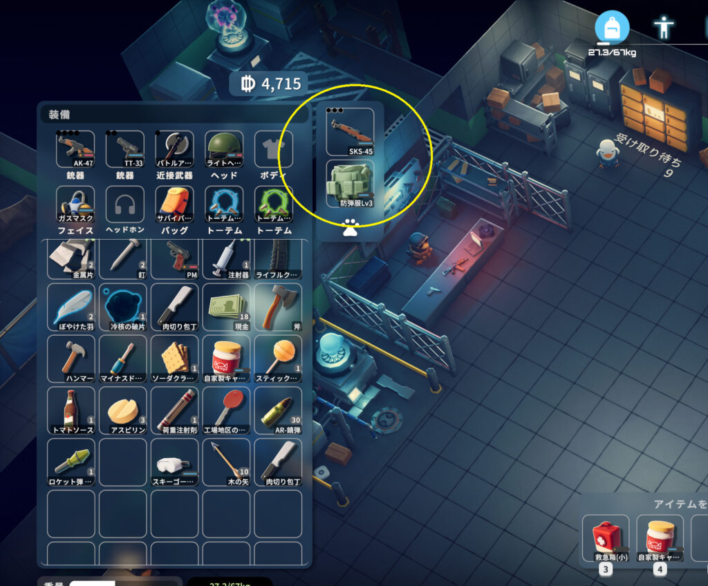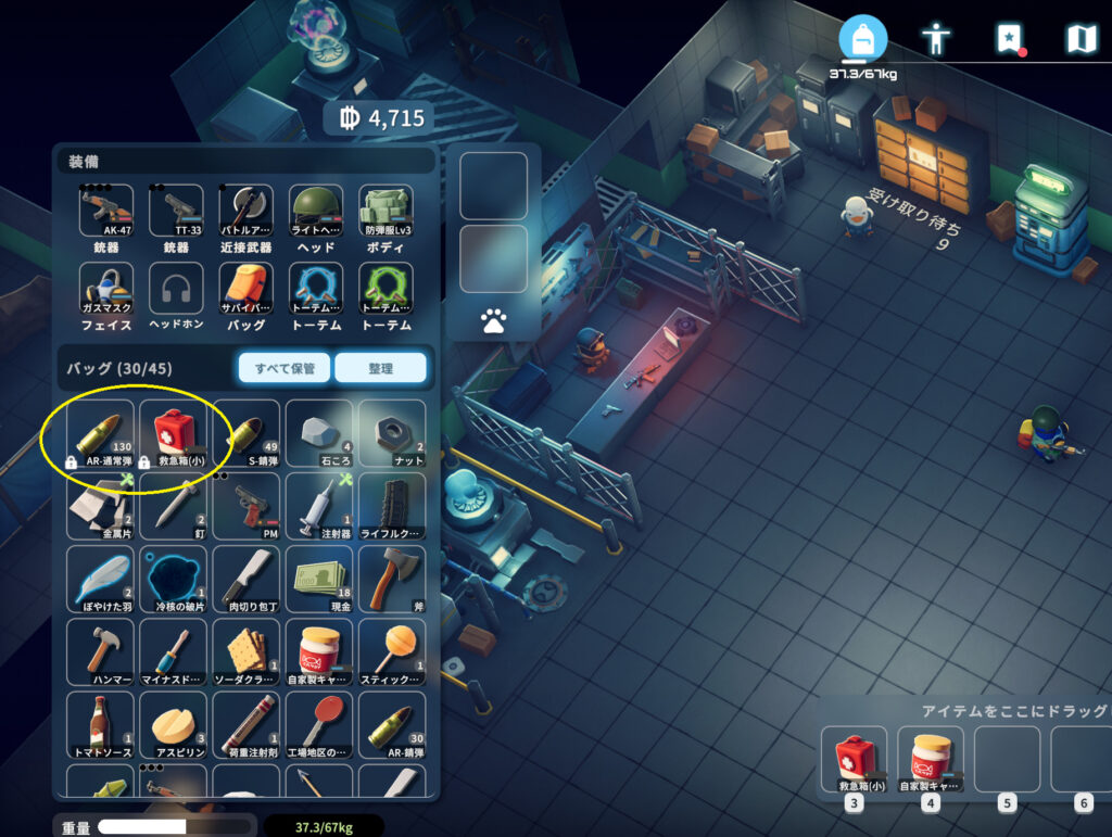 ※ロックしたいアイテムにカーソルを合わせLキーでロックすることができます。戦闘にいつも持ち歩く弾薬や救急箱はロックしておくと便利です!