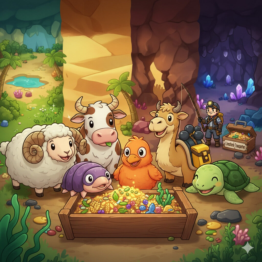 Core Keeperにおける「畜産」は、強力なバフ効果を持つ食料やクラフト素材を安定して入手できる非常に重要な要素です。 2025年3月の大型アップデート「バッグと爆発」では、新たな畜産動物**「ラクラクーダ」が追加され、さらに同年5月/7月のアップデート...